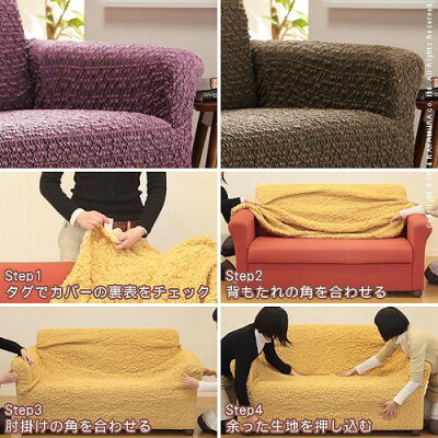 便利雑貨 スペイン製 ストレッチフィットソファカバー 肘掛け付き・3人掛ワイド ソファカバー 3人掛け 肘付き パープル
